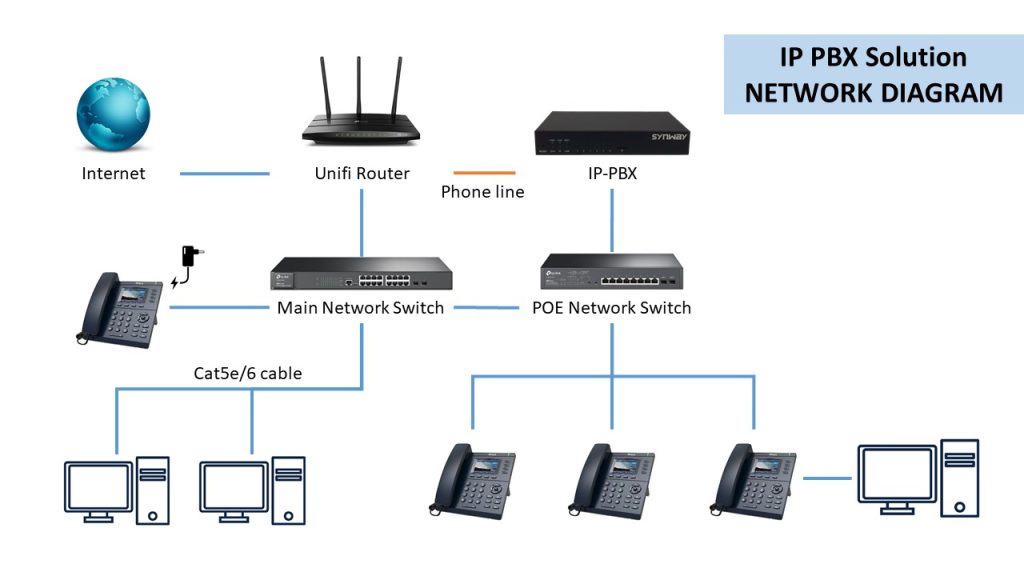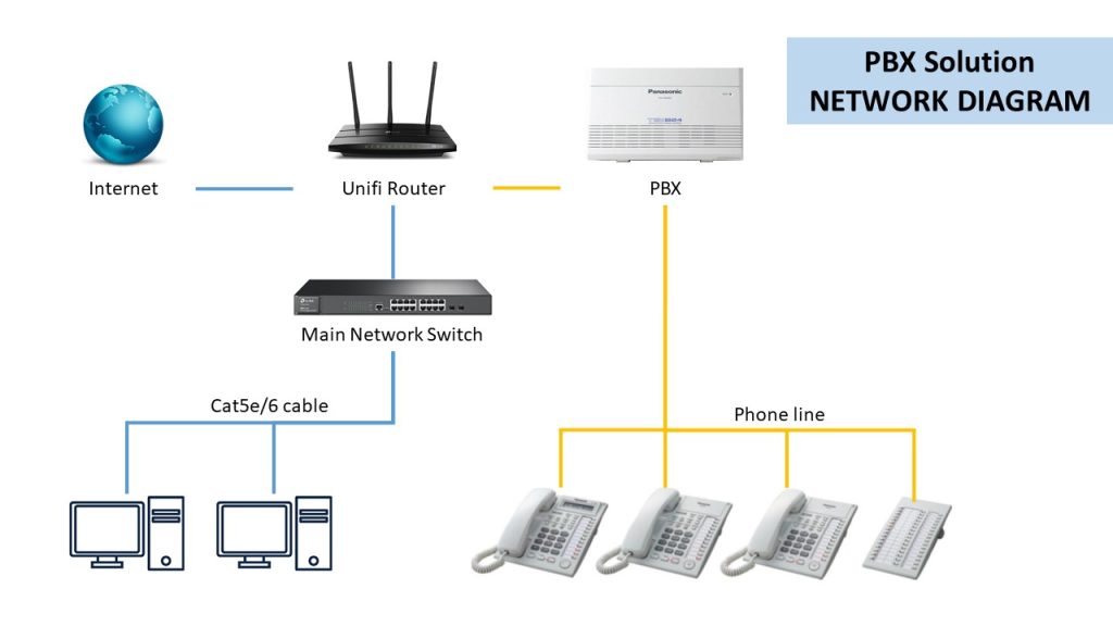 PABX Telephone System or Keyphone System able to switch to multiple phone or multiple lines without spending extra for the service. It can transfer calls or sharing a single access line. It needed PBX Controller to manage and configure the setting.